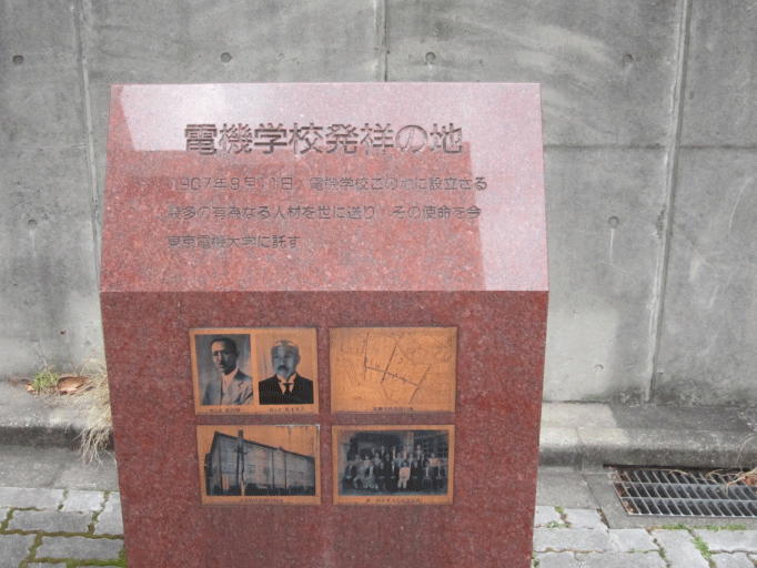 神田キャンパスの裏手、神田警察通りに「電機学校発祥の地」と記した石碑があります。この石碑は永久に残るでしょう。(※1)